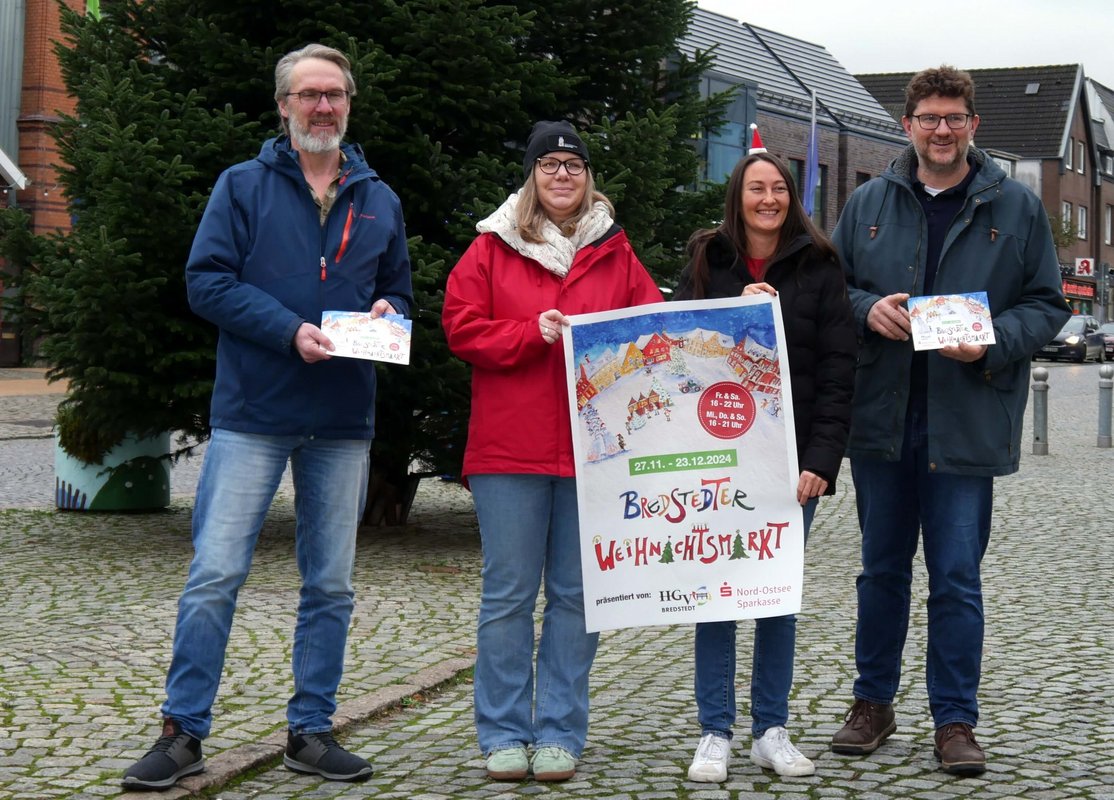 Bredstedt. Mit Klängen des Bredstedter Spielmannszug wurde gestern (27.11.) der Bredstedter Weihnachtsmarkt eröffnet. Bis zum 23. Dezember können sich Gäste der Stadt auf festliche Gemütlichkeit auf dem Marktplatz freuen. In den zurückliegenden Tagen hatten der Handels- und Gewerbeverein (HGV), der Bauhof der Stadt sowie weitere Unterstützer das Areal rund um den Schweinebrunnen vorbereitet. Ein prächtiger Weihnachtsbaum, einige Buden und das historische Kinderkarussell laden nun zum Verweilen ein.