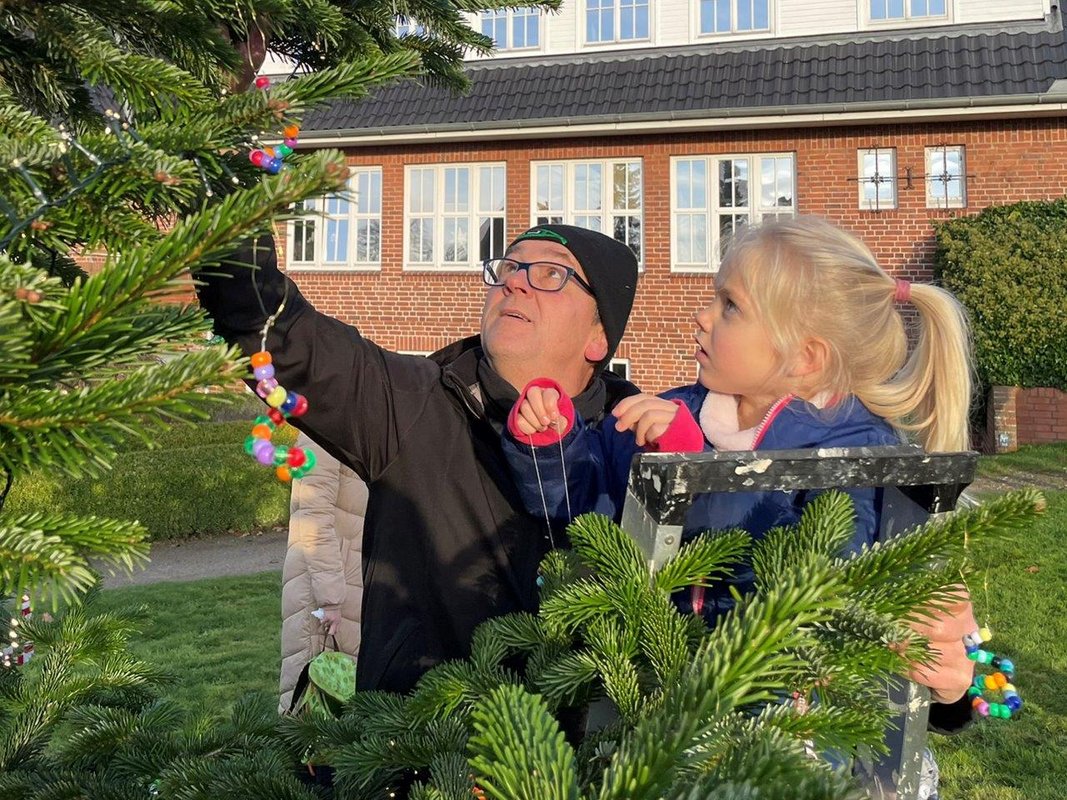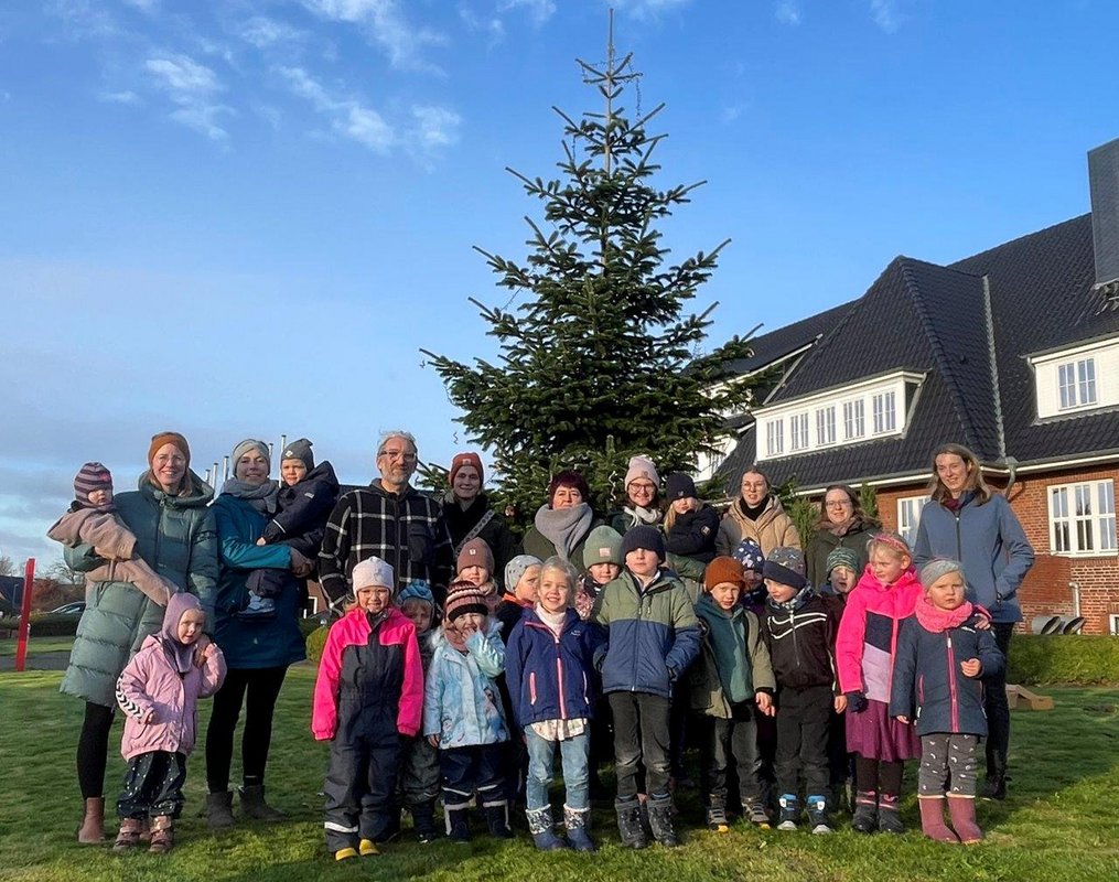 Bredstedt. Was für ein niedliches Gewimmel auf der Wiese vor dem Amtsgebäude: 20 Mädchen und Jungen des Evangelischen Kindergartens in Drelsdorf hatten sich jüngst auf den Weg gemacht, um den großen Weihnachtsbaum zu schmücken. Begleitet von ihrem Kita-Leiter Tom Wolf und weiteren Betreuerinnen und Betreuern hatten sie jede Menge selbstgebastelten Schmuck im Gepäck. Bunt verzierte Tannenzapfen, Sterne oder auch kleine Engel wurden mit flinken Händen in der Tanne verteilt. Amts-Hausmeister Frank Bajohr half den Kleinen mit Muskelkraft sowie einer Leiter in höheren Regionen. In rund 20 Minuten war der Baum prächtig geschmückt. Amtsdirektorin Judith Horn bedankte sich im Anschluss herzlich bei den Kindern. Gemeinsam mit Heike Köhntopp von der Verwaltung überreichte sie süße Leckereien und Obst als kleine Belohnung.