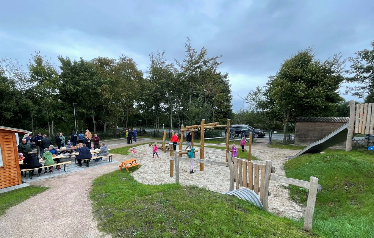 Insgesamt investierte die mit rund 60 Einwohnerinnen und Einwohnern kleinste Gemeinde im Mittleren Nordfriesland knapp 105.000 Euro in seinen neuen Dorftreffpunkt. Er dient nunmehr Einheimischen wie Touristen als einladender Ort zum Verweilen. Kinder können zudem auf und in den Spielgeräten tüchtig toben.