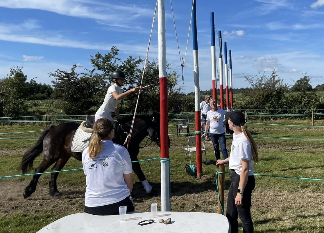 Sönnebüll. Mit beeindruckenden Leistungen ging das diesjährige Kinderamtsringreiten in Sönnebüll über die Bühne. Bei herrlichem Sonnenschein starteten die Wettkämpfe bereits am frühen Morgen. 18 Teilnehmende verzeichnete das Orga-Team des Ringreiter- und Schützenvereins „Freiweg Sönnebüll“. In zahllosen Durchläufen bestimmten die Reiter und Amazonen ihre Besten. Das Königsreiten entschied Sünje Petersen aus Högel (gestartet für Joldelund) für sich. Der Mannschafts-Wanderpokal ging an das Team aus Bohmstedt, das mit 83 Ringen vor Joldelund (72) und den Gastgebern aus Sönnebüll (54) landete.