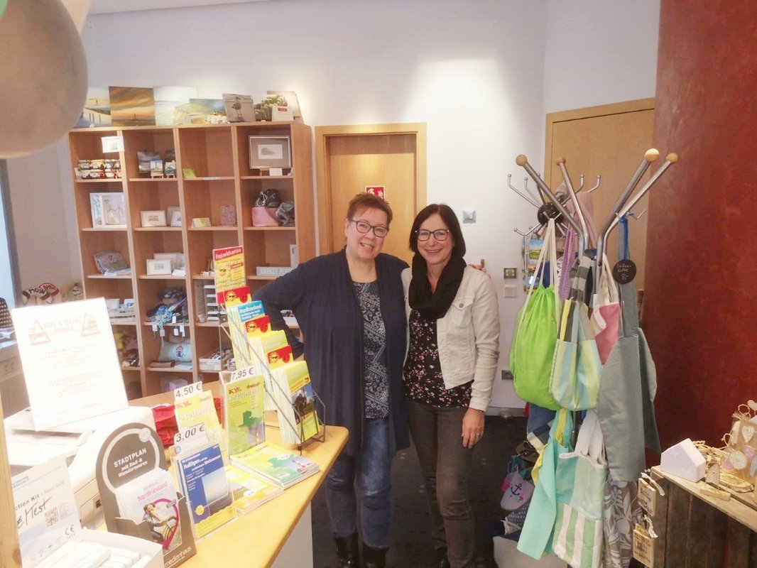 Die Mitarbeiterinnen der Tourist-Info stehen Ihnen bei der Suche nach Sehenswürdigkeiten und Unternehmungen im Mittleren Nordfriesland zur Seite. Selbstverständlich lassen sich in der Tourist-Info auch Unterkünfte buchen. Dazu gibt es beispielsweise zahlreiche Prospekte, Orientierungskarten zu Radrouten, Info-Broschüren, Bahn-Fahrkarten (im SH-Tarif) oder etwa Tickets für den Fährbetrieb der Reederei WDR nach Föhr und Amrum. Im Eingangsbereich findet sich zudem eine feine Auswahl von Deko, Accessoires, Geschenkartikeln und Unikaten von Künstlern und Handwerkern aus der Region, die von den Mitarbeiterinnen ebenfalls verkauft werden.